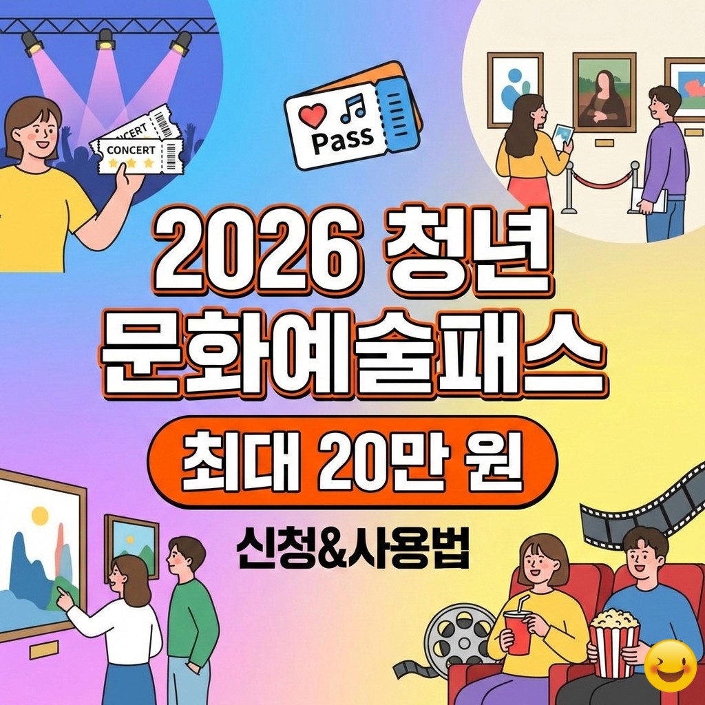 정부는 이러한 청년들의 문화 향유 기회를 넓히기 위해 2026 청년 문화예술패스를 시행합니다. 거주 지역에 따라 최대 20만 원까지 지원받을 수 있는 이번 제도의 신청 자격부터 사용처, 주의사항까지 핵심만 짚어 정리해 드립니다.